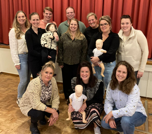 De cursus Eerste Hulp aan Kinderen is gehouden op 9, 16 en 23 september 2025. De cursus is gegeven door onze instructeur Ilse Gast-Rekers. Op bijgaande foto de cursisten die succesvol aan de cursus hebben deelgenomen: Loes Stokkelaar, Tessa Rikhof-Bonke, Femke van Hulzen-Huttenhuis, Anieck Geerds, Laura Nieuwmeijer, Tjitske Groente-Stam , Janine Oude Weernink, Manon Nijhuis, Ellen Bolk, Kay Bolk, Carlijn Bos, Rick Bos.